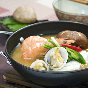 ④ 다시마물에 새우젓국으로 간을 맞추고 굴과 두부, 실파, 건홍고추, 말린 톳나물을 넣고 끓인다.
